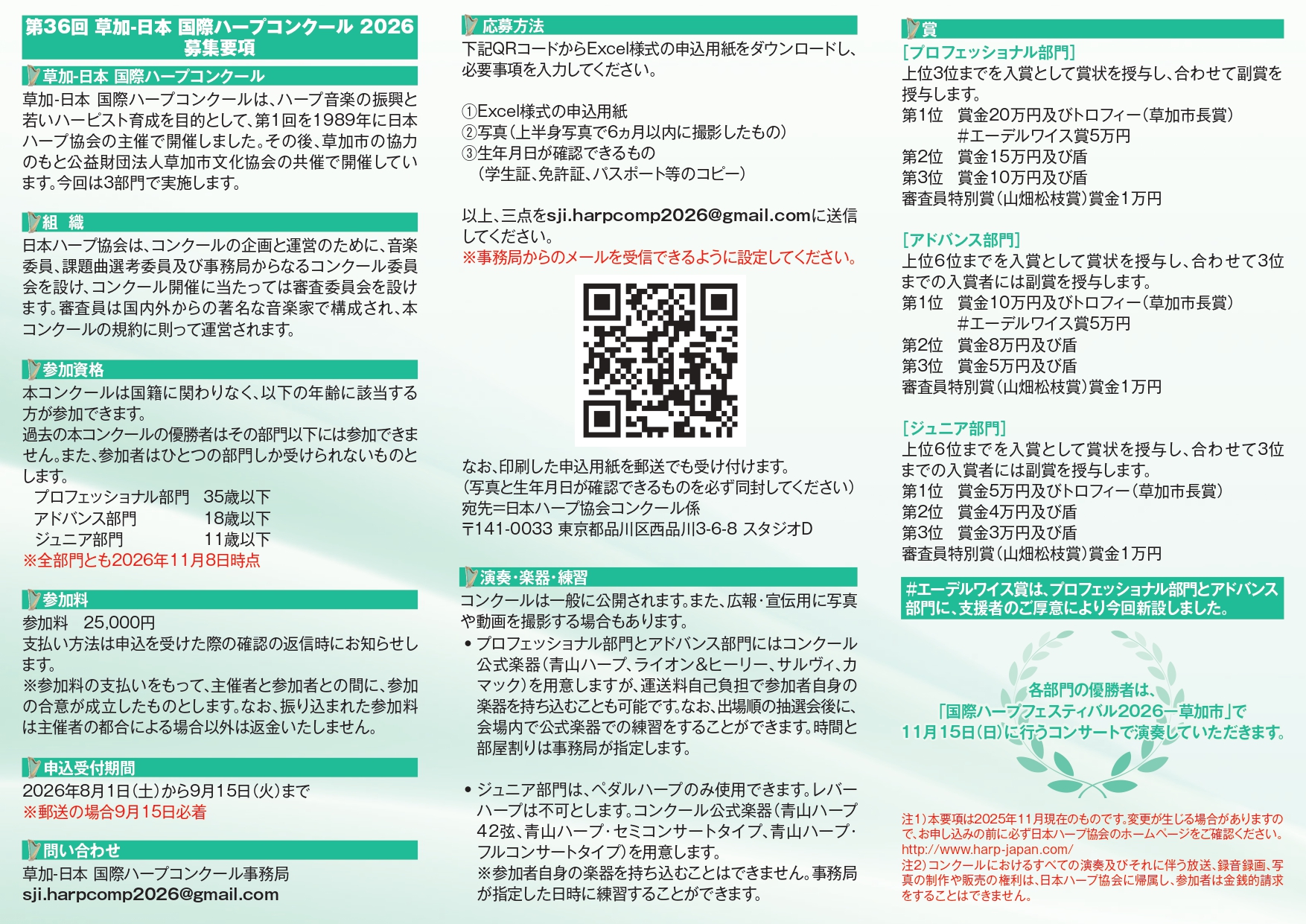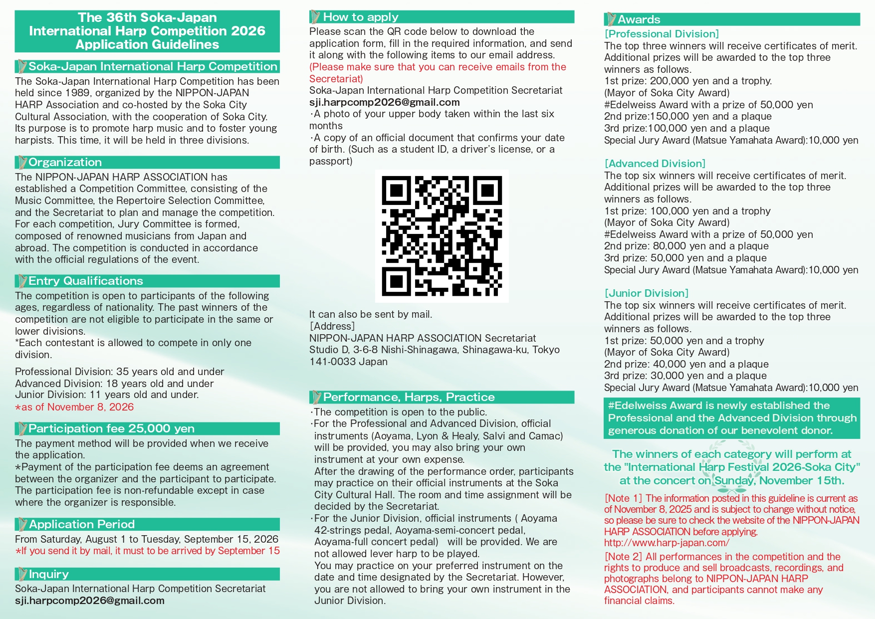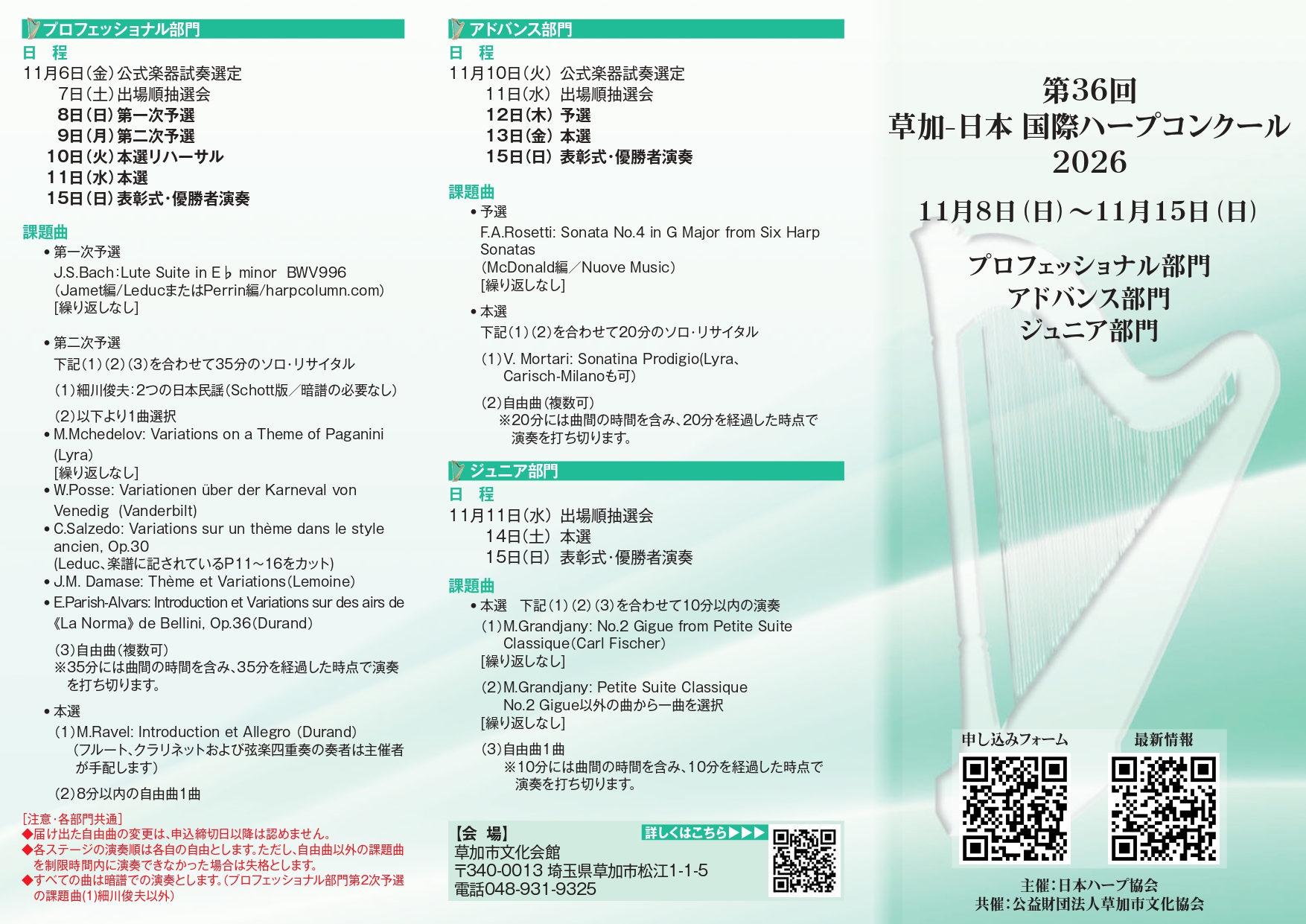 第36回 草加-日本 国際ハープコンクール2026 募集要項 Competition 2026 Application Guidelines